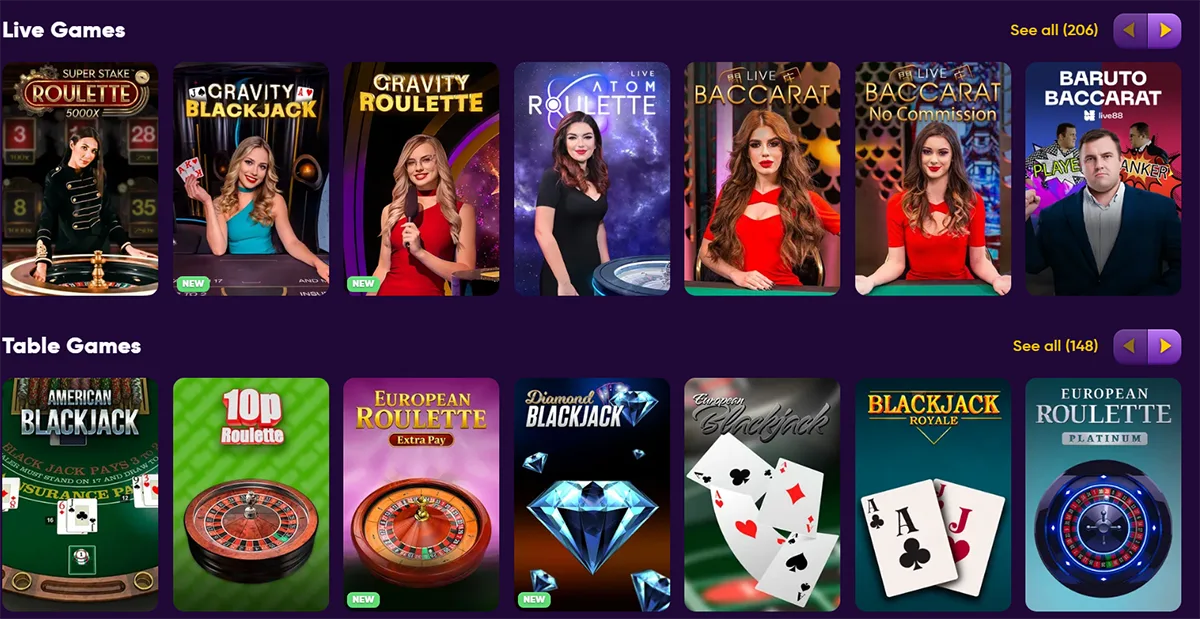 Živý blackjack obsahuje tradiční i pokročilé varianty. VIP stoly nabízejí vyšší limity pro náročné hráče, zatímco standardní stoly jsou vhodné pro začátečníky.