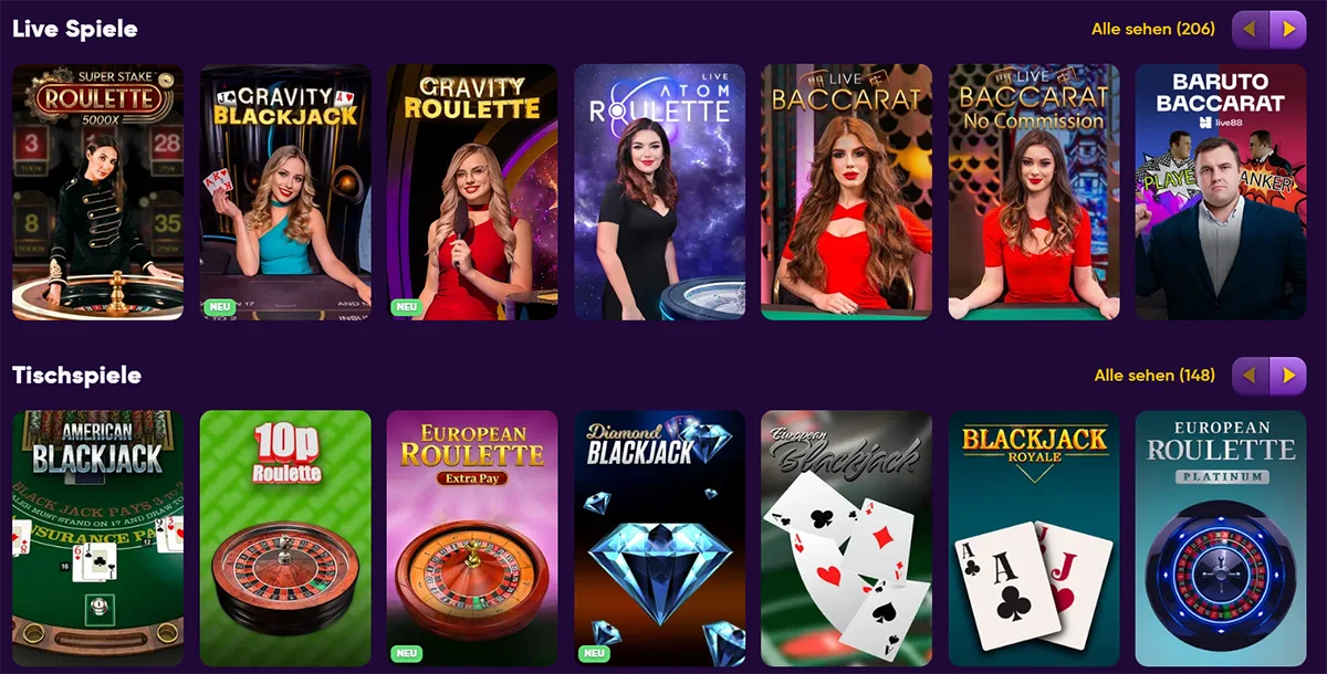 Unser Casino bietet über 8.500 Spiele von 82 renommierten Entwicklern. Sie finden bei uns alles von klassischen Slots bis hin zu über 200 Live-Dealer-Tischen.